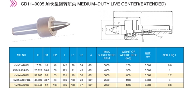 加長(zhǎng)型回轉(zhuǎn)頂尖